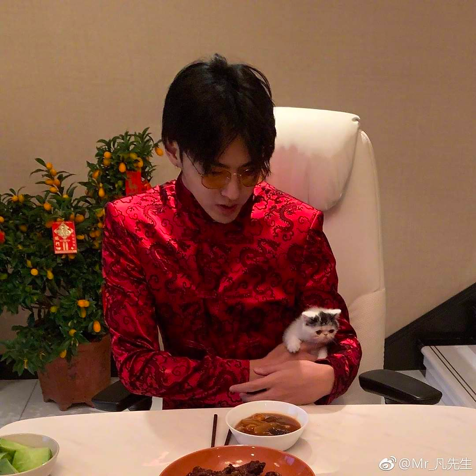 This is Kris Wu a Candian rapper who also loves to show off his heritage by wearing the traditional changpao! (https://pbs.twimg.com/media/FKhKk61akAImKWz.jpg)